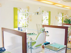 明るい診療室には、各チェアーごとに花をあしらい、患者さんにリラックスして治療を受けていただけるよう配慮しています。